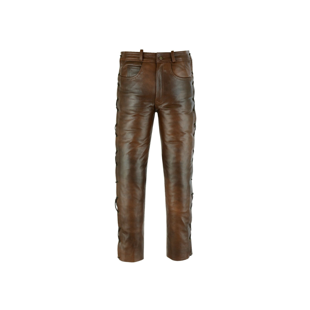 Men’s Brown Leather Pants Trousers With Side Laces