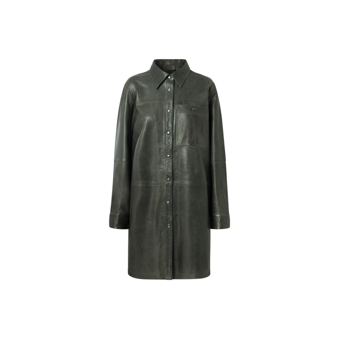 Long oversize shirt in a nice and soft leather quality. The shirt has a simple look, but is decorated with large chest pockets on the front, which gives a cool.
