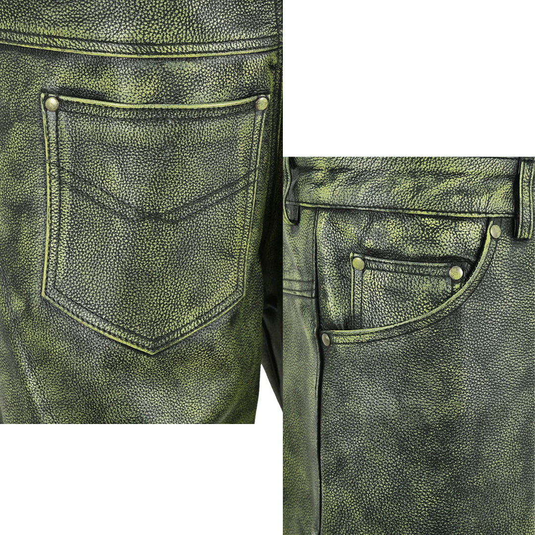Men’s Leather Pants Bikers Full Grain Waxed Jean Green