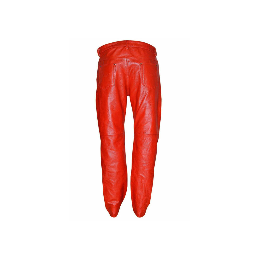 Ready to turn some heads? Our slim fit red leather pants give you that cool, retro vibe you’re looking for. They’re made with genuine leather, so you know they’ll look and feel great. If you love to stand out from the crowd with your style, these pants are for you (though maybe not for a quiet family dinner!).