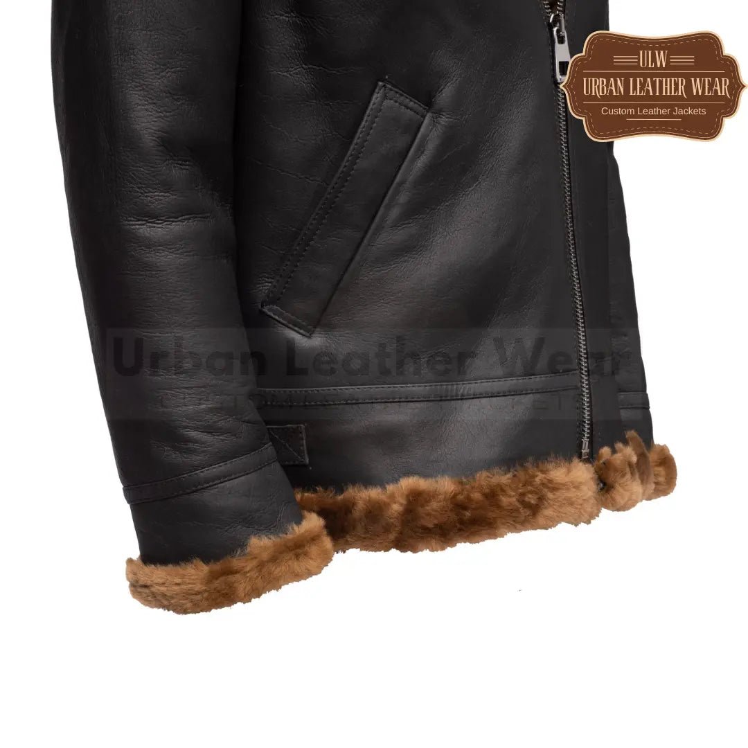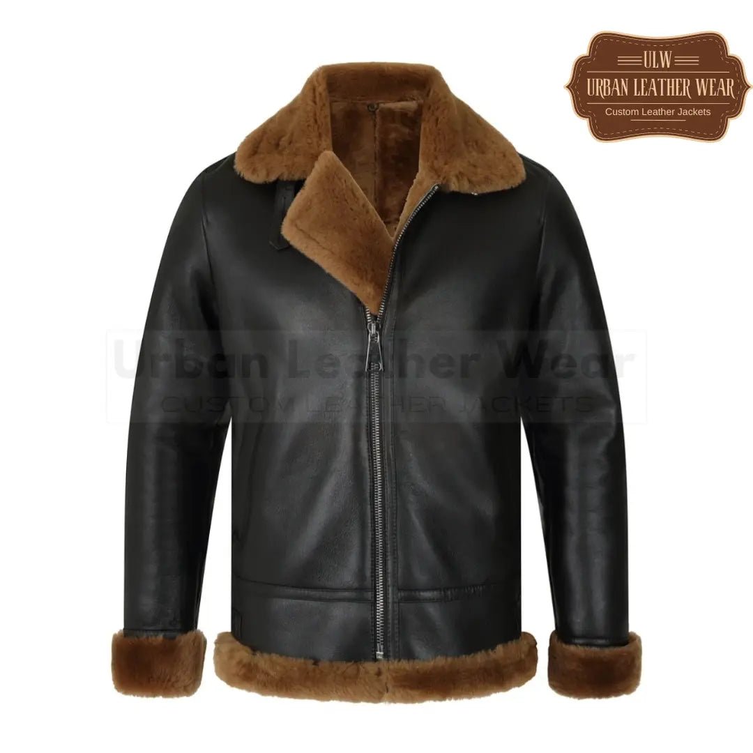 Men B3 Bomber Aviator Shearling Leather Jacket (Black)