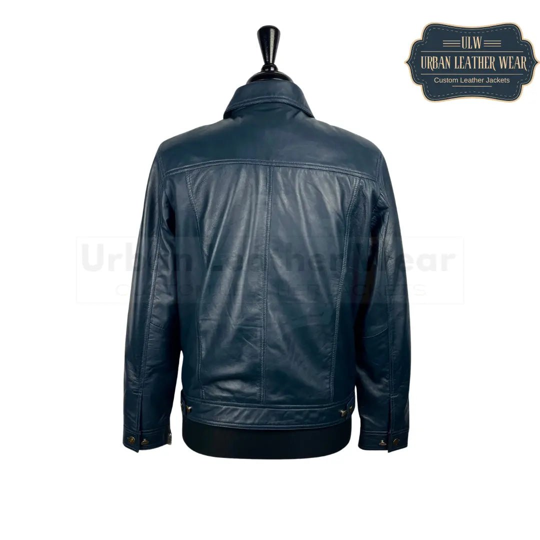 Elevate your style with our Men Denim Style Blue Leather Trucker Jacket. Made with high-quality leather, this jacket offers durability and sophistication. Perfect for any occasion, it will elevate your look and give you a confident and stylish edge. Upgrade your wardrobe today with this timeless piece.