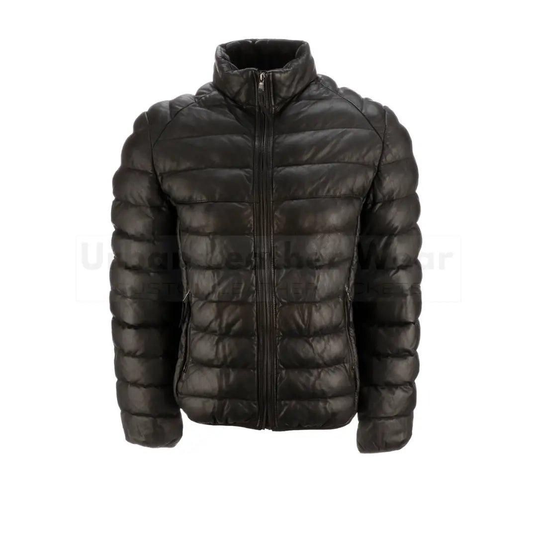 This jacket perfectly combines cool style with smart design. It takes the classic puffer look and elevates it with genuine leather, giving you a luxurious feel. The inside is padded for warmth, but it’s not bulky, so you get to stay warm and look great all at once.