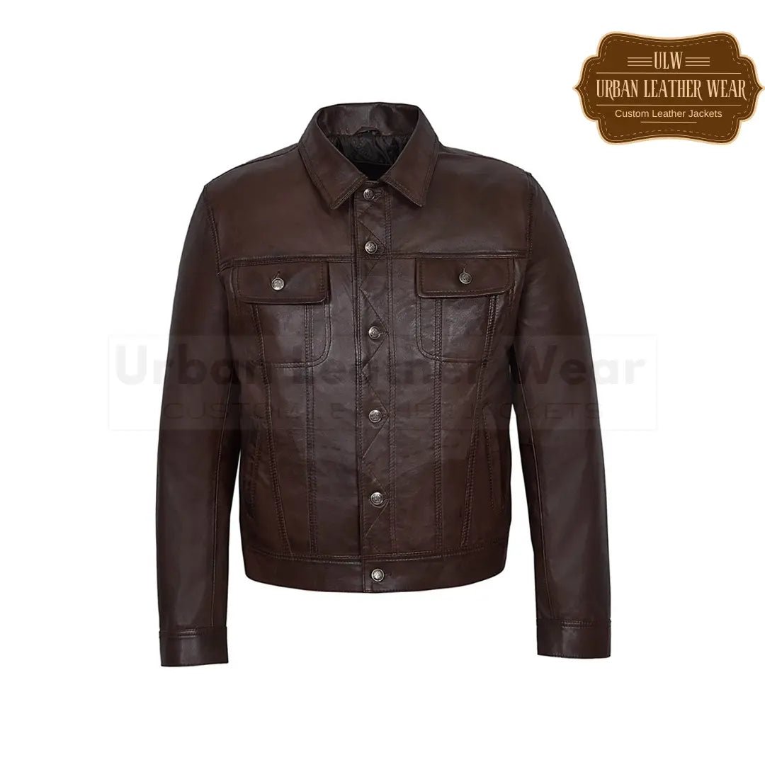 Experience the ultimate style and confidence with our Men Leather Trucker Jacket. Made from genuine leather in a classic American Western Denim style, this jacket exudes a rugged yet sophisticated look. With its rich brown color, you’re sure to make a bold fashion statement wherever you go.