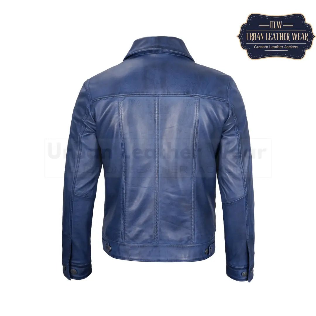 This men’s blue trucker jacket is a stylish and comfortable reinterpretation of the classic design. It’s made from soft, genuine leather and lined with smooth polyester, so it feels great to wear. You’ll love the versatile, slim fit and the classic pleated details. Plus, it’s functional with plenty of storage, including two front flap pockets, two side pockets, and two inside pockets. It’s a great piece you can wear all year.