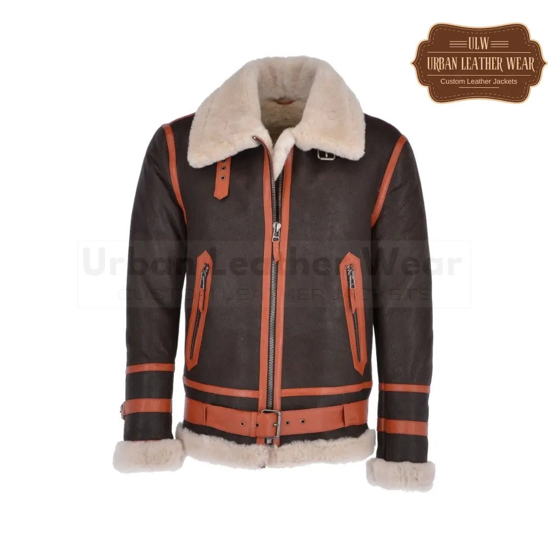 This Men Shearling Flying Leather Jacket in Brown and Orange is a stylish and practical addition to any wardrobe. The shearling lining provides warmth and comfort, while the leather exterior adds a touch of sophistication. Perfect for any outdoor adventure or casual outing, this jacket is a must-have for any man on the go.