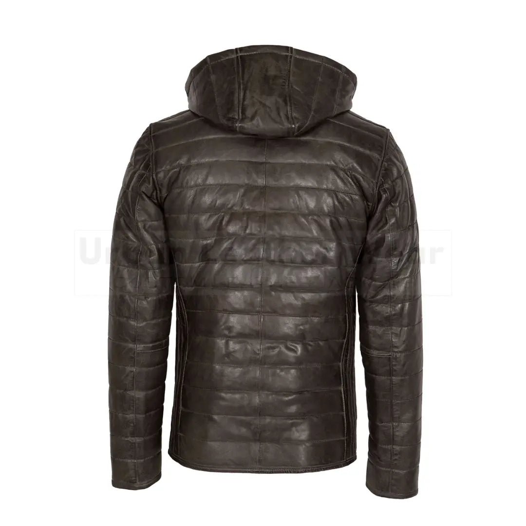 Stay warm and stylish with our Mens Leather Puffer Jacket Brown with Hood. Made from high-quality leather, this jacket features a puffer design that provides both insulation and a sleek look. The added hood makes it perfect for any weather and the brown color adds a touch of sophistication.