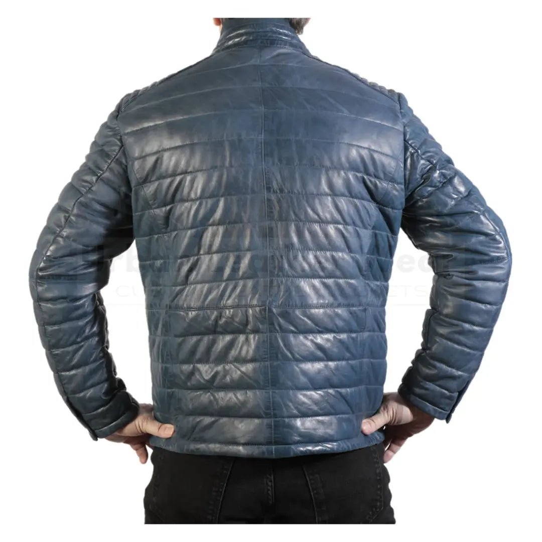 Stay stylish and warm with our Puffer men blue quilted leather padded jacket. The quilted design not only adds a touch of modernity, but also provides extra padding for colder days. Made with high quality leather, this jacket provides both durability and comfort.