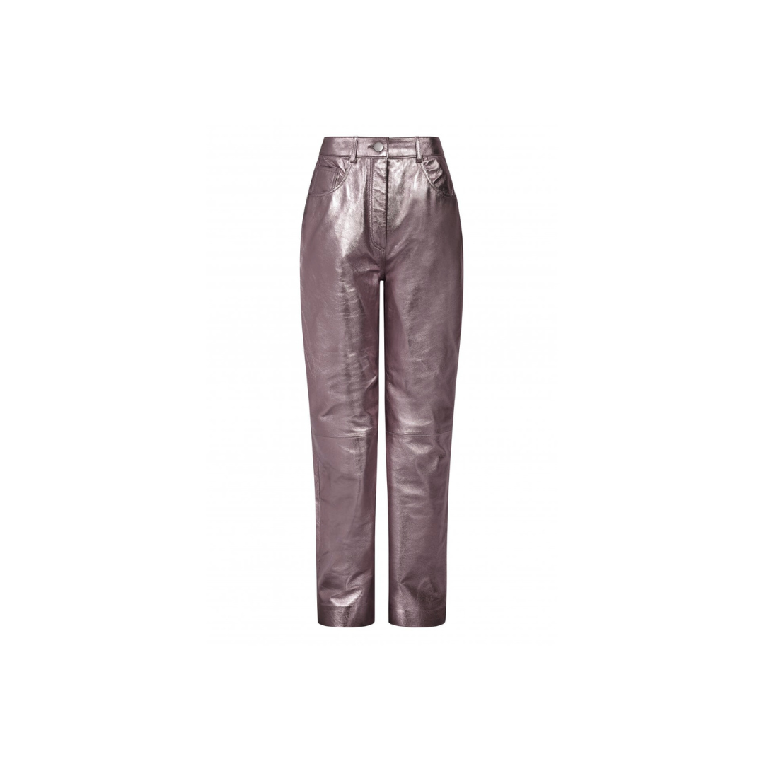 Get ready to slay in these purple leather trousers! With a straight leg fit, these pants are perfect for making a statement. Made for the ladies who like to stand out, these trousers will elevate any outfit. Get ready to turn heads and be the talk of the town in these stylish and unique pants.