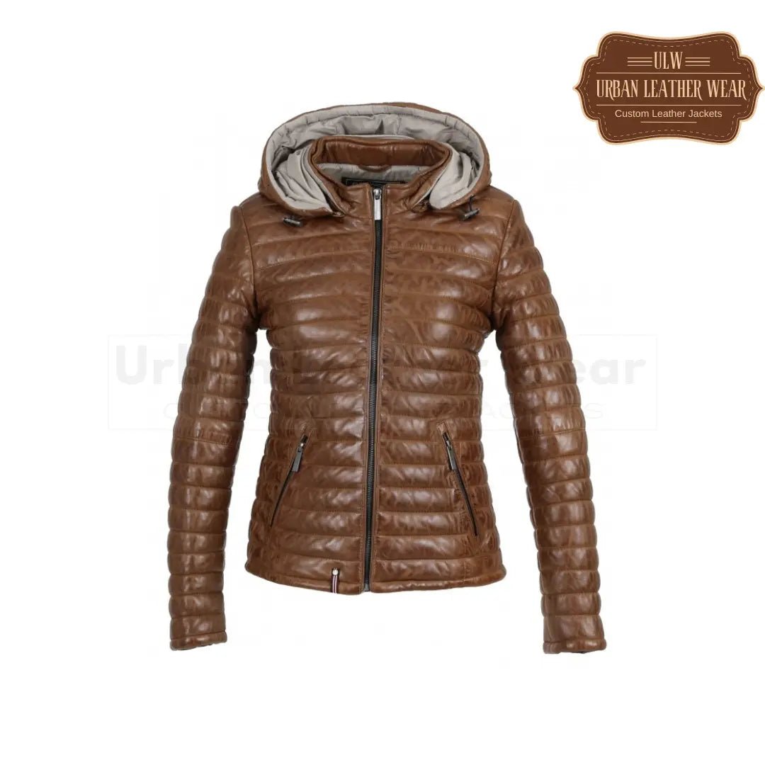 Stay warm and stylish in our two-tone genuine leather hooded down jacket. Crafted with premium leather and soft down insulation, this jacket offers unbeatable warmth and comfort. The coffee color adds a touch of sophistication. Perfect for cold weather adventures.