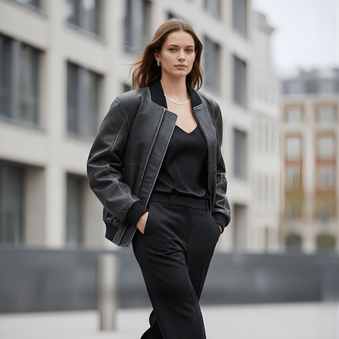 This versatile oversized bomber jacket pairs seamlessly with a multitude of ensembles. Style it with tailored trousers and a minimalist top for an elevated casual look, or combine it with distressed denim and boots for an edgy, streetwear-inspired aesthetic. You may also like our Leather Pants and Trousers.
